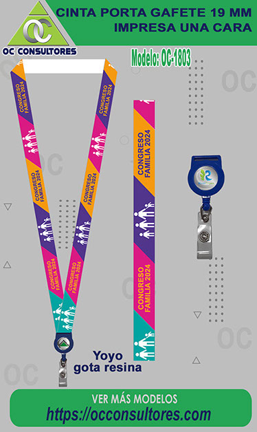 Precios de Listón para gafete 19mm con yoyo y gota de resina a todo color.