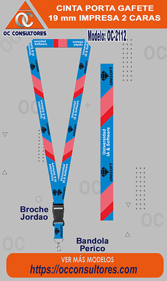 Precios de Cordón para credencial 19mm con 2 bandolas Perico impreso por DOS lados