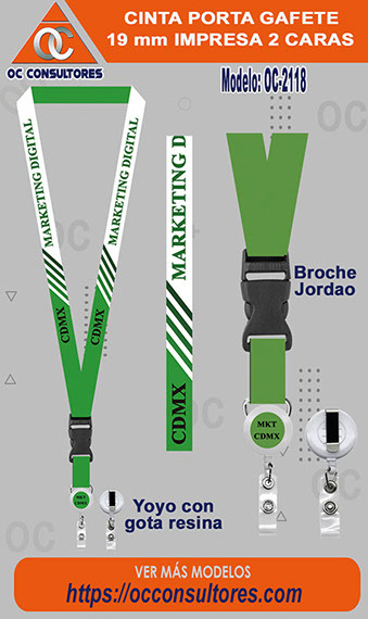 Cordón Portagafete personalizado a todo color, la cinta es blanca y se puede imprimiir por un lado o por ambos lados. Contamos con diferentes herrajes de acabados