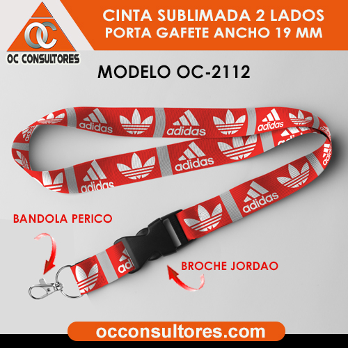 Precios de listón porta gafete personalizado 19mm a todo color ambas caras, con bandola perico.