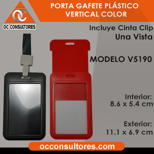 Porta Gafete Plástico Vertical Color Negro, Rojo, Azul, Verde